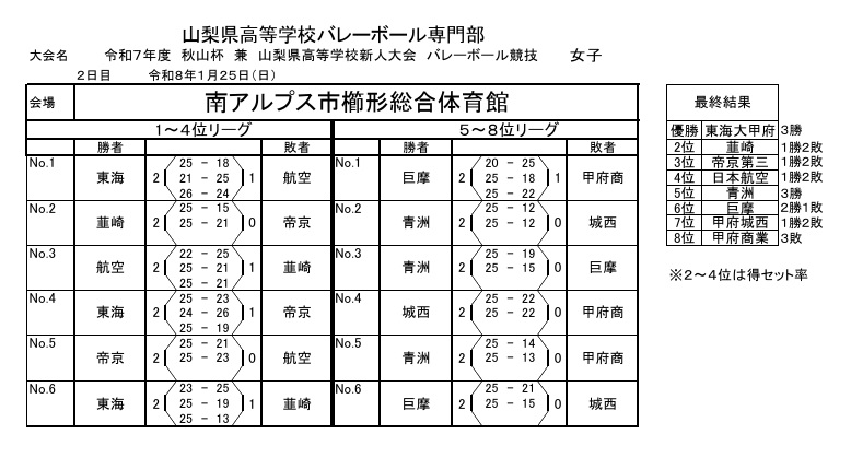 山梨県高体連バレーボール専門部HPより:http://yamanashi-hsv.com/result.html